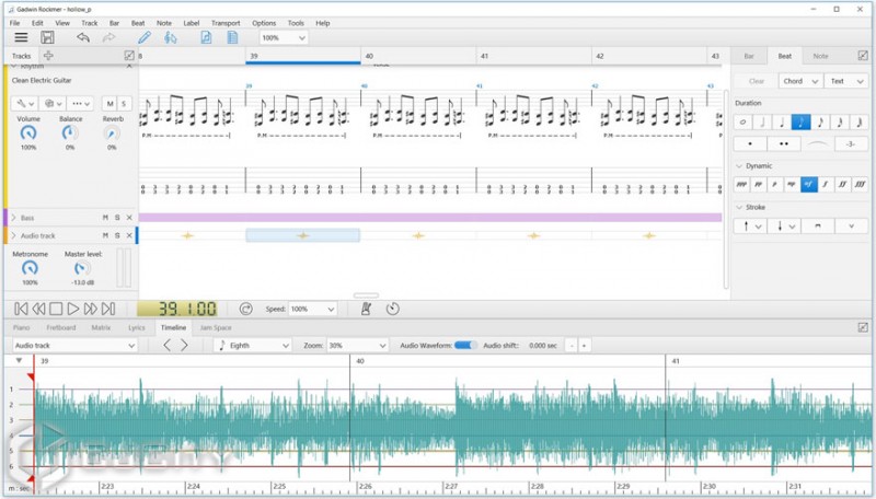 Программа для создания, редактирования и прослушивания табулатуры и нот для гитары. Используется для регулярной игры на гитаре, для изучения песен или для повышения ваших навыков работы. Есть поддержка VST-плагинов.