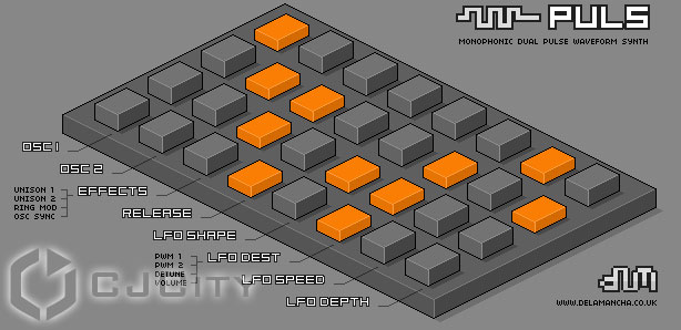 PULS - это монофонический синтезатор импульсных волн, простой в управлении, но дающий сложные звуки. Из двух импульсных осцилляторов вы можете получить плотные басы, жгучие лиды, ретро звуки аудиочипов, мутные низкокачественные и оригинальные шумовые звуки. Необычный изометрический интерфейс в стиле пиксель арта, где недостаёт ручек, всё восполняет в звуке.