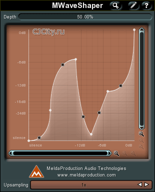 MWaveShaper 1.05 - традиционный плагин, предназначенный для изменения формы волны. В отличие от многих плагинов такого рода, где можно выбирать только между готовыми волноформами, здесь они поддаются настройке.