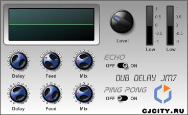 Dub Delay JM7 - очень простой, но эффективный эхо/дилей плагин с хорошим звуком. Хорошо подойдет для обработки им вокальных партий и ударных перкуссий.