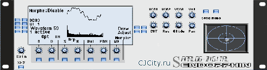 3 виртуальных аналоговых и 3 цифровых осциллятора, каждый с 14 голосами (цифровые - с 6), 5 аналоговых волноформ, 250 цифровых волноформ, ADSR (громкость) и 12db фильтр (низкочастотный, высокочастотный, среднечастотный) с отслеживанием нажатий клавиш.