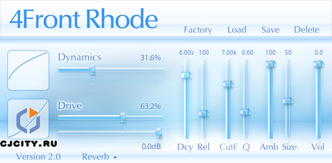 4Front Rhode - родес, эмулятор классического звука клавишного инструмента "RSP73". Плагин не основан на записанных семплах, а генерирует звук, как говорится "на лету". По этой причине плагин содержит 127 слоев с винтажными родес.